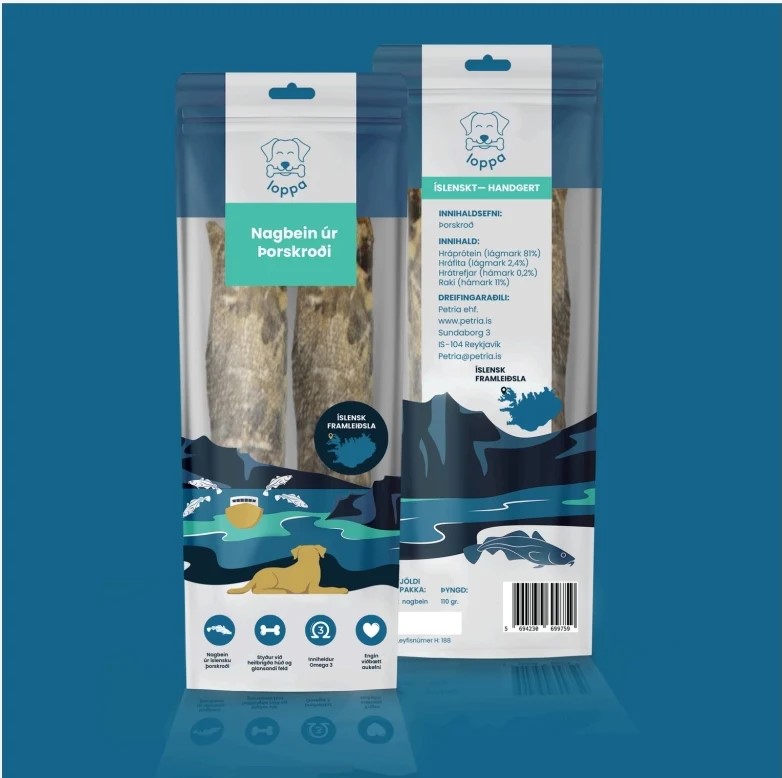 Nagbein úr íslensku þorskroði frá vörumerkinu Loppa er íslenskst og handgert. Nagbeinin eru ljúffeng á bragðið og er þorksroð eina innihaldsefnið. Nagbeinin eru tilvalin til að fá þinn besta vin til að „dunda“ sér við að naga þorskroðið í dágóða stund og það er einnig gott fyrir tennurnar til að koma í veg fyrir uppsöfnun tannsteins.