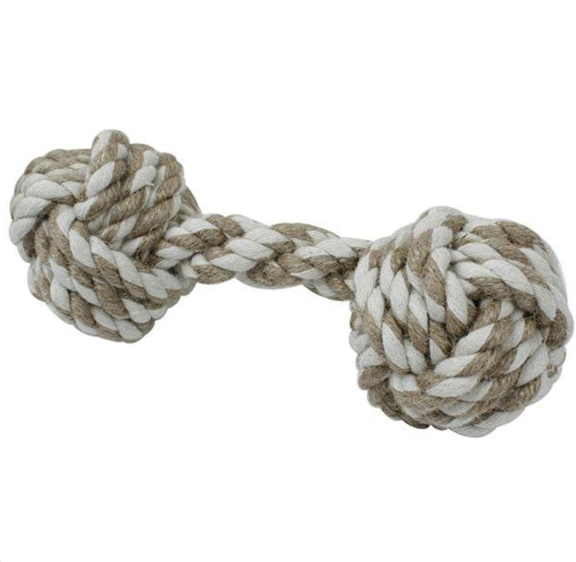 Beinlaga nagleikfang úr hnútum og fléttuðu bómullarreipi. Hentar í þjálfun eða nagleiki sem stuðla að góðri tannheilsu. Lengd 20 cm.