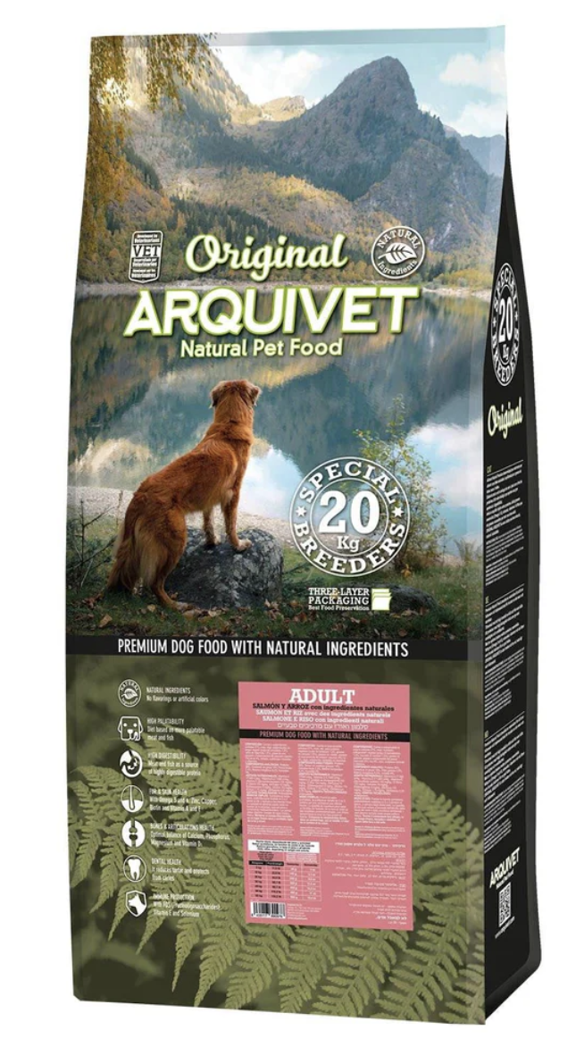 Premium food for adult dogs of all breeds, based on salmon, rice, and high-quality natural ingredients. Made with a high fish content as a source of high biological value protein that provides great palatability and digestibility. With an optimal balance of protein, minerals, vitamins, and fiber that your dog needs for good health.