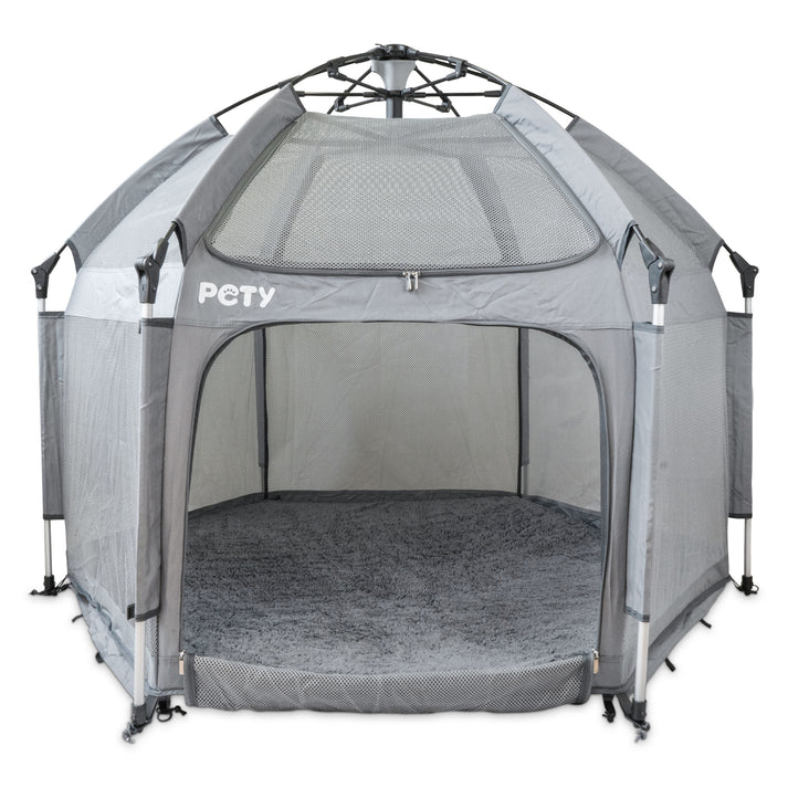 Með dýnuhlífinni verður PETY enn þægilegra fyrir hundinn þinn! Hægt er að festa hlífina auðveldlega við dýnuna. Taktu gólfdýnuna upp eins og venjulega og opnaðu lokann. Dragðu hornin á hlífinni yfir dýnuna og þú ert búinn!