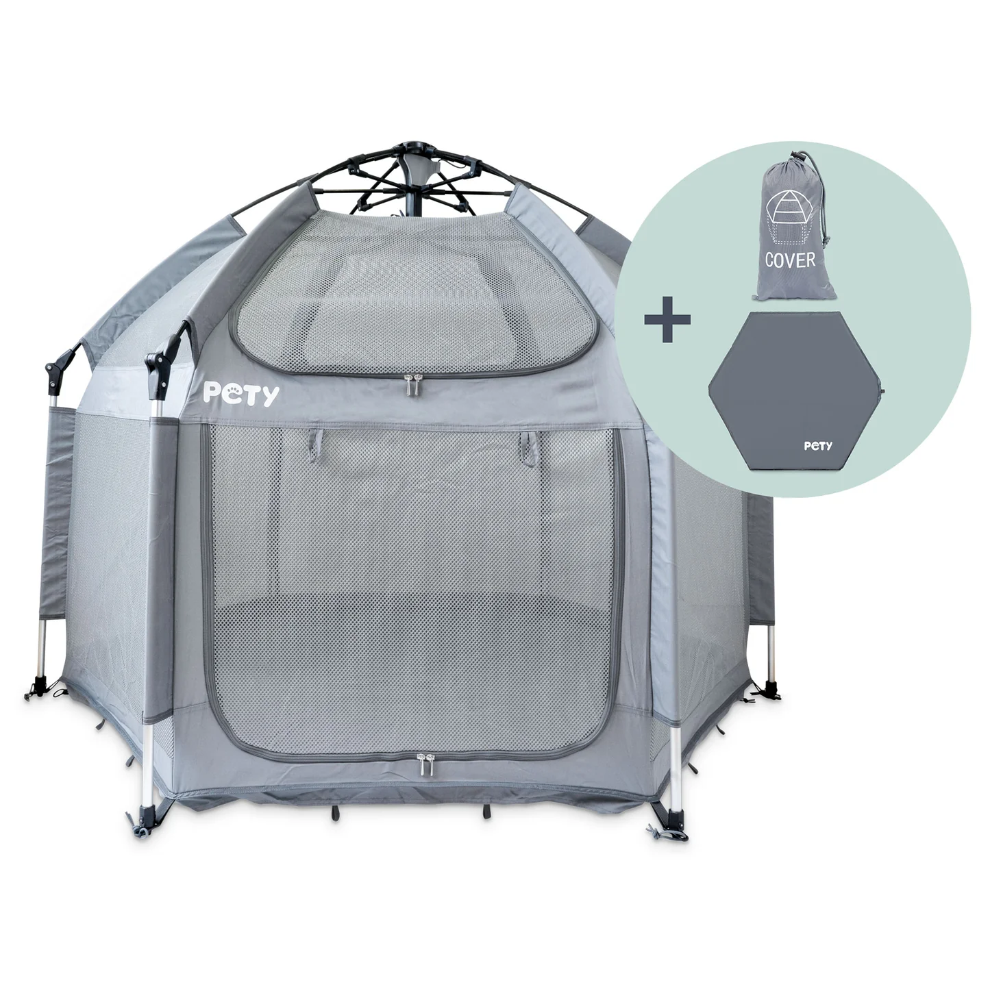 Nýr uppáhaldsstaður hundsins þíns. PETY leikgrind/búr fyrir hunda er sett upp og sett saman aftur á nokkrum sekúndum. PETY grindin er einnig tilvalin fyrir ferðalög eða hundasýningar þökk sé hve fislétt og fyrirferðalítil hún er samanbrotin. Það er hágæða loftræsting í gegnum netveggina á PETY og þú hefur hundinn þinn alltaf í augnsýn.