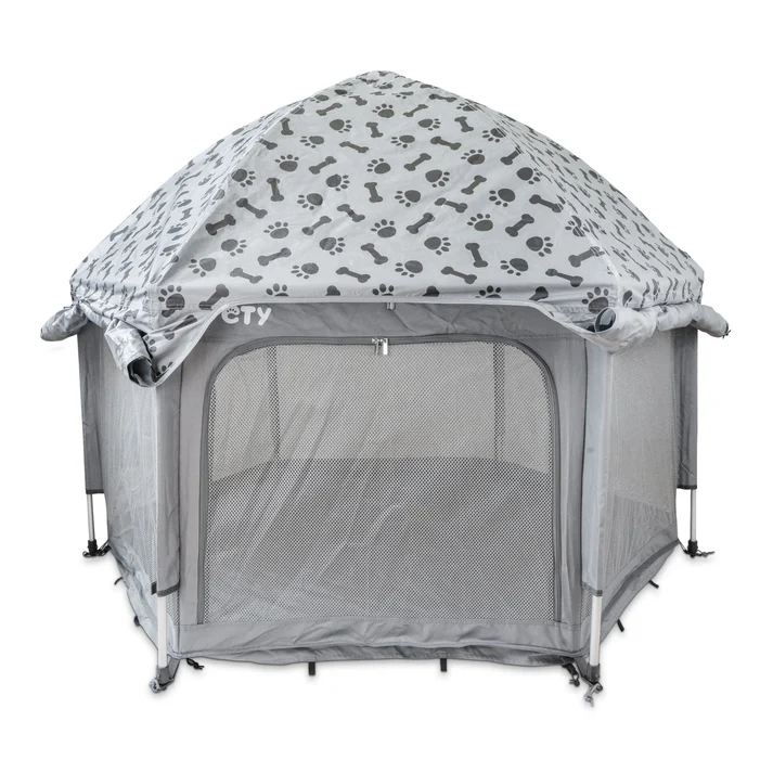 Tilvalið til notkunar utandyra og innandyra! Cover Plus verndar hundinn þinn fyrir hættulegum útfjólubláum geislum og er vatns- og vindfráhrindandi - frá öllum hliðum. Lokuðu hliðarveggirnir þýða líka að hundurinn þinn verður minna fyrir truflun af umhverfi sínu. Hægt er að opna allar hliðar, hverja fyrir sig eða saman og binda upp.