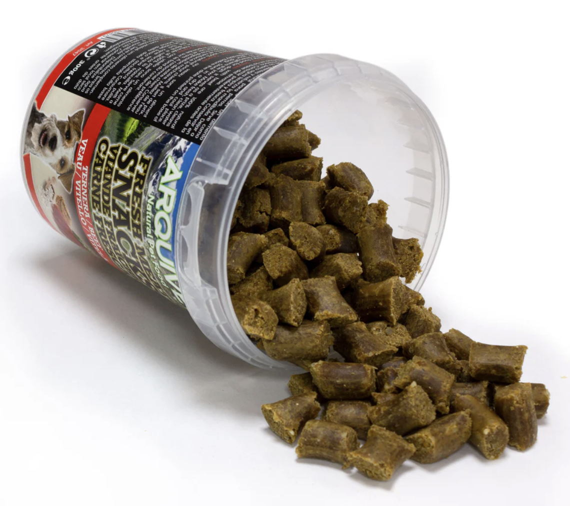 Fresh meat snacks for adult dogs. 100% natural beef-based complementary food.