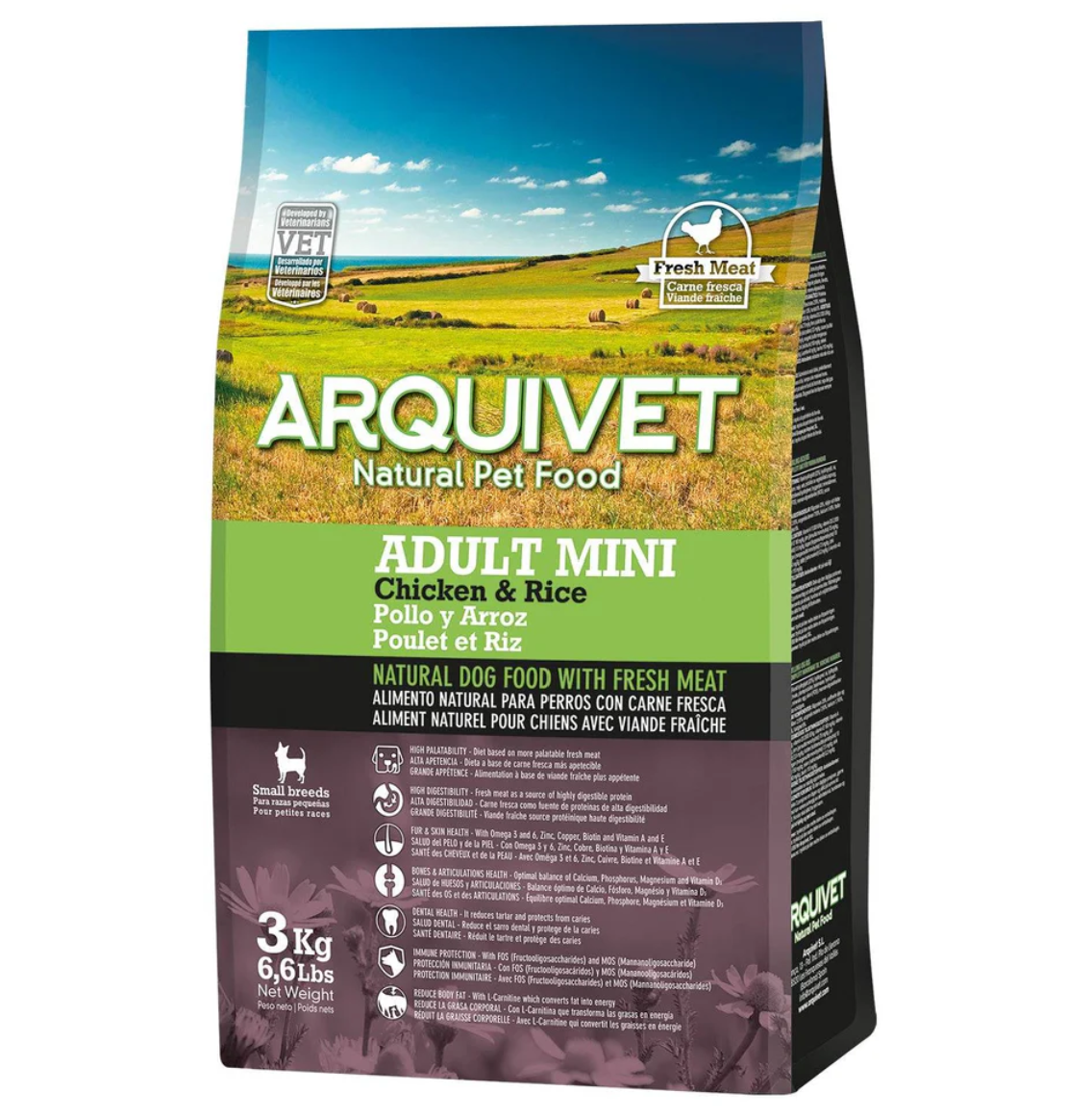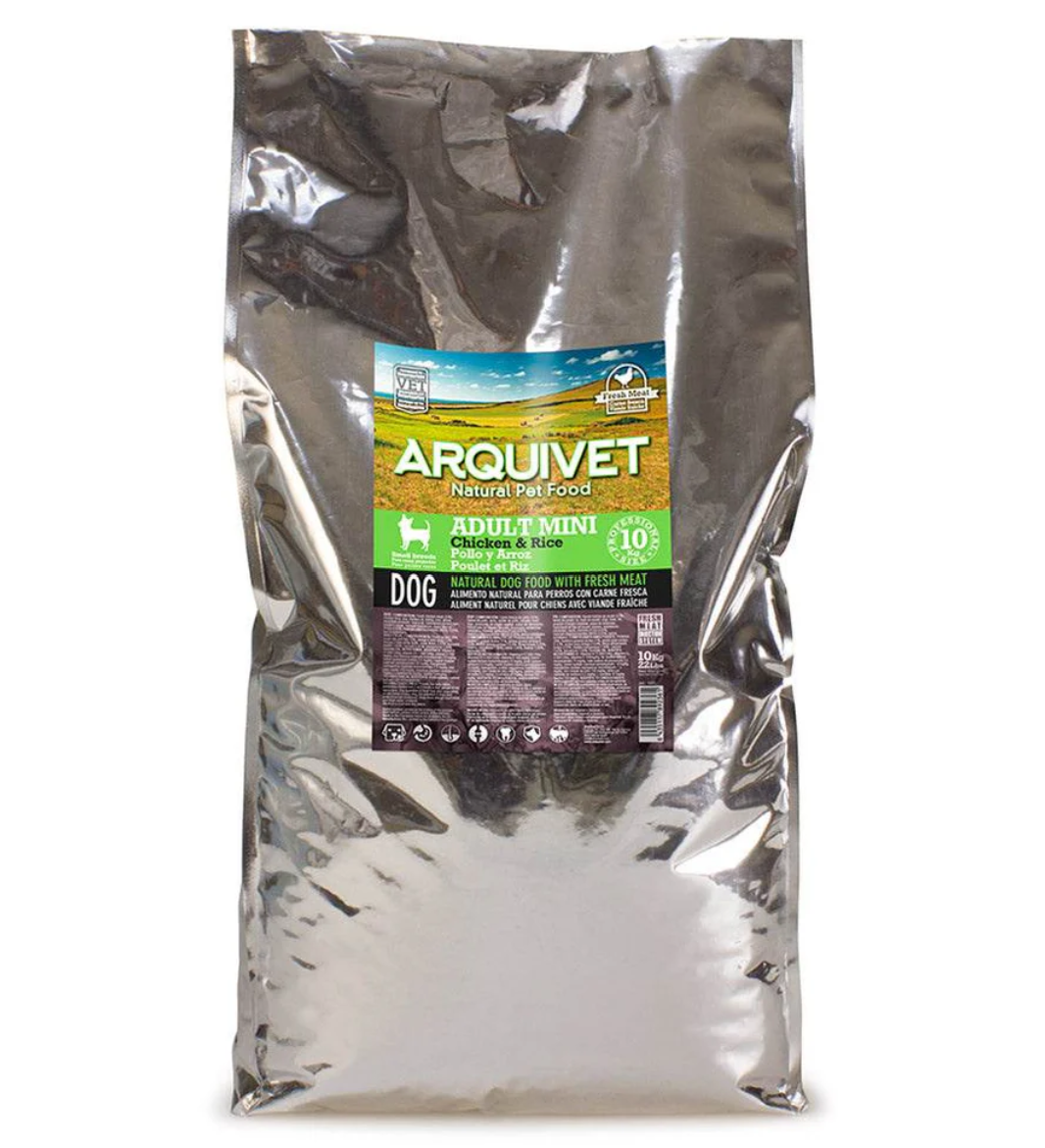 Food for adult dogs of small breeds (1 to 10 kg), based on fresh chicken and rice. Formulated with high-quality ingredients. Triangular kibble: sides 9 mm / thickness 5 mm